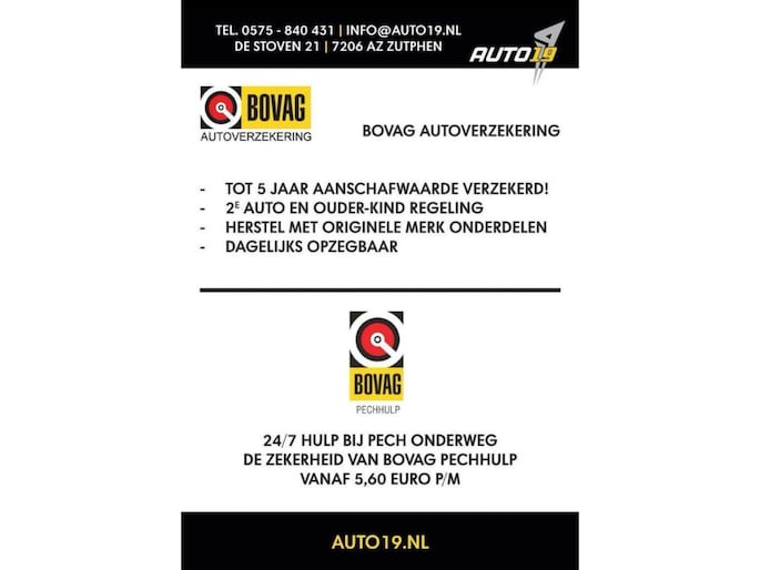 Vraag vrijblijvend een voorstel aan voor het financieren of leasen van deze auto. Stuur een email naar verkoop@auto19.nl, of bel naar +31 (0)575 840 431.