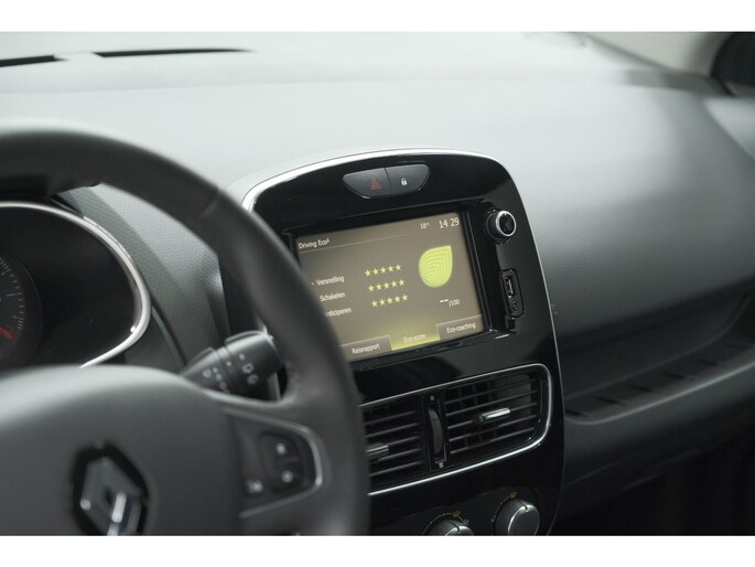 U kunt tijdens de rit uw ogen steeds op de weg houden, want het audiosysteem (met dab!) en het full map navigatiesysteem kunt u bedienen vanaf het stuur. Omdat u nu eenmaal niet overal ogen heeft, is deze Renault Clio voorzien van een achteropkomend verkeer waarschuwing die registreert wanneer de afstand tot uw achterligger te krap is. Inparkeren zonder angst voor schade. De parkeersensoren helpen u om moeiteloos in de kleinste parkeervakken te manoeuvreren. De cruise control houdt de snelheid constant. Dat is relaxt reizen! Sleutelloos instappen en wegrijden! De keyless start herkent de elektronische sleutel in uw bezit en start de motor met een druk op de knop. De uitrusting van deze auto is met airconditioning, buitentemperatuurmeter, lederen stuur, centrale deurvergrendeling met afstandsbediening, boordcomputer en lederen versnellingspook behoorlijk compleet.