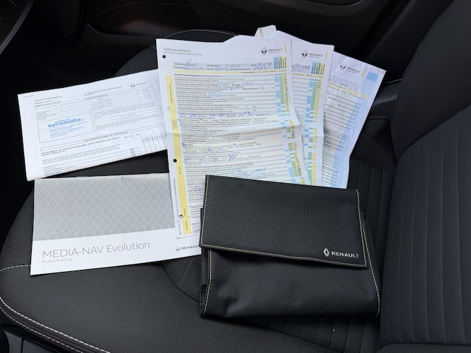 Deze Clio is o.a. uitgerust met: Origineel Navigatiesysteem met geïntegreerde Bluetooth Carkit, Cruise control, Stoelverwarming, Parkeersensoren, Automatische Airco, Lichtmetalen velgen, Mistlampen, Metaal lak, Radiobediening aan het stuur, Dakrailing, IsoFix aansluiting voor kinderzitjes enz. enz