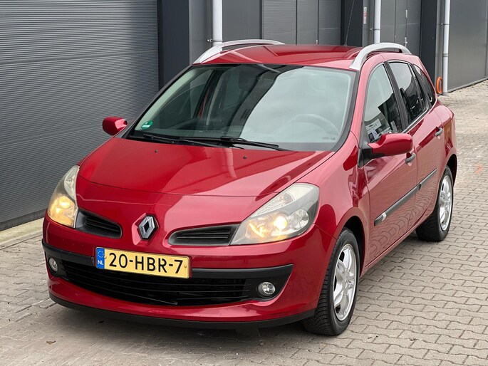 Ben je op zoek naar een praktische, stijlvolle stationwagen? Deze Renault Clio Estate 1.2 TCE Dynamique uit 2008 biedt het allemaal. Uitgevoerd in een tijdloze rode kleur en voorzien van een handgeschakelde vijfversnellingsbak