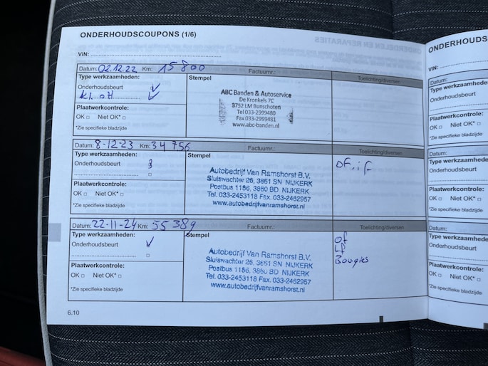 Onderhoudsboekjes: Aanwezig