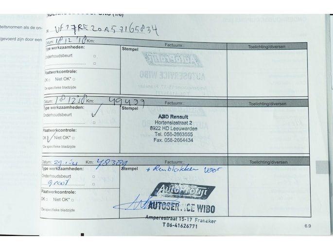 Onderhoudsboekjes: Aanwezig