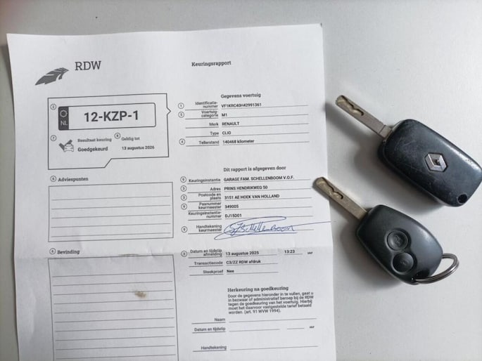 De reservesleutel, boekjes en de Nationale Auto Pas (NAP) zijn erbij.