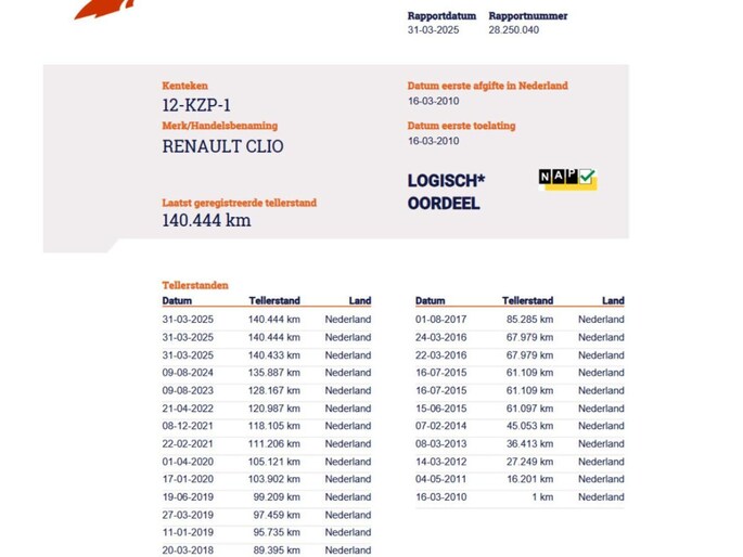 Kilometerstand gecontroleerd