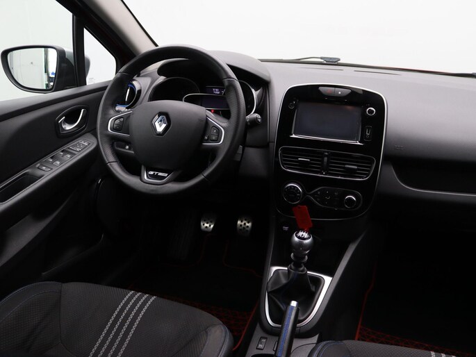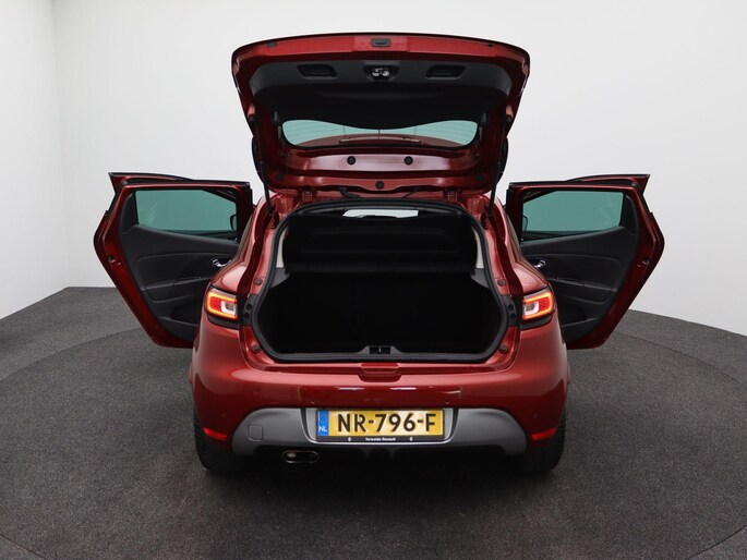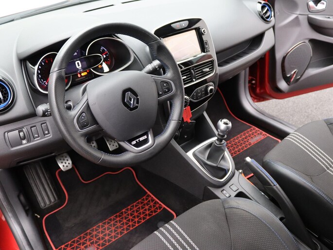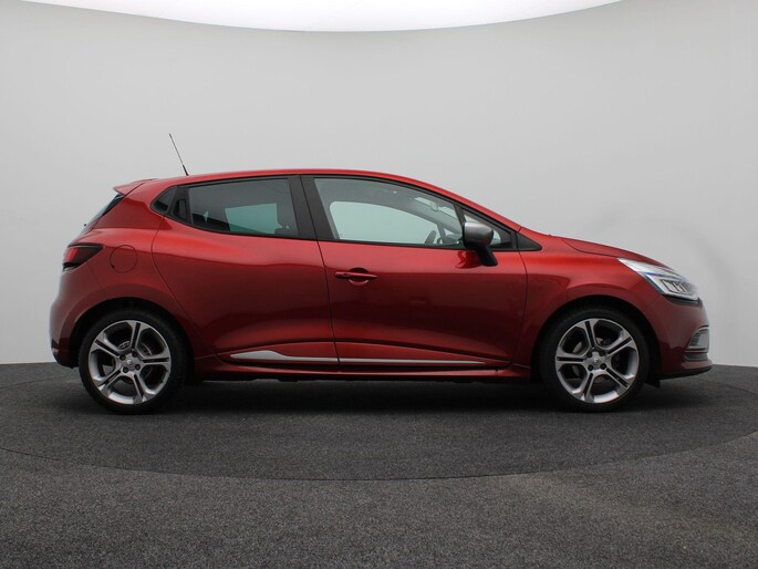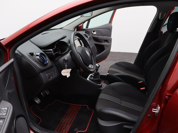 Uitgevoerd in Rouge Intense special metaallak (TWV €695) met extra getint glas en privacy glass achter (TWV €195 + €695) valt hij direct op. Dankzij de Pack GT-Line (TWV €995) beschikt deze Clio over sportstoelen, 17" lichtmetalen velgen en een dynamische uitstraling.