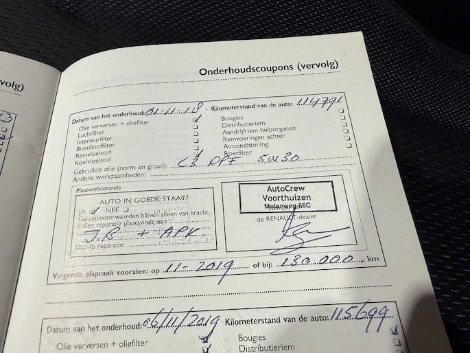 Onderhoudsboekjes: Aanwezig