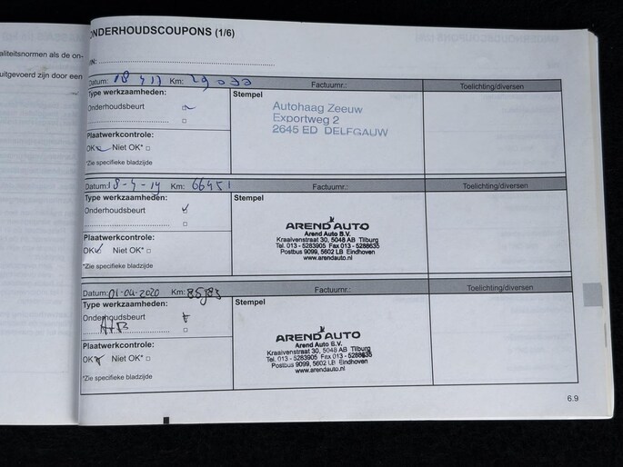 Onderhoudsboekjes: Aanwezig