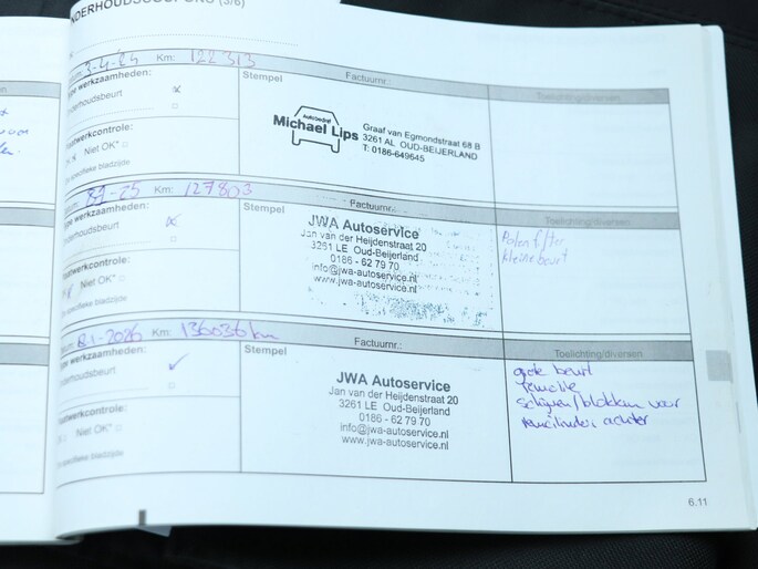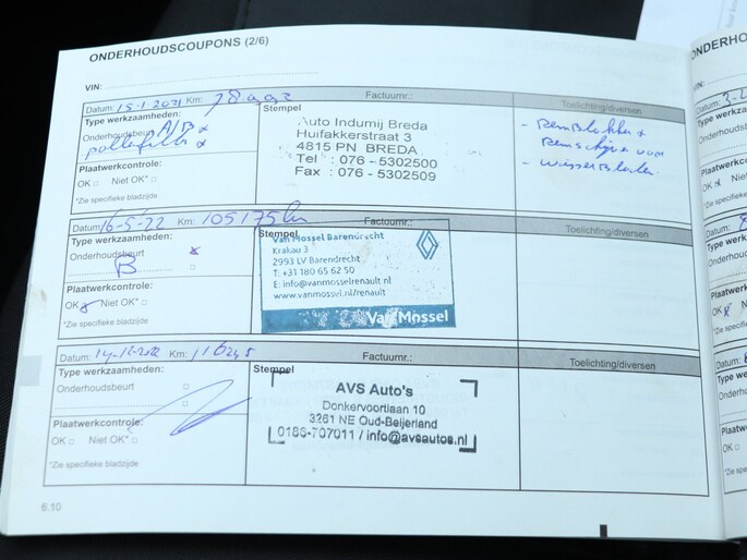 Onderhoudsboekjes: Aanwezig