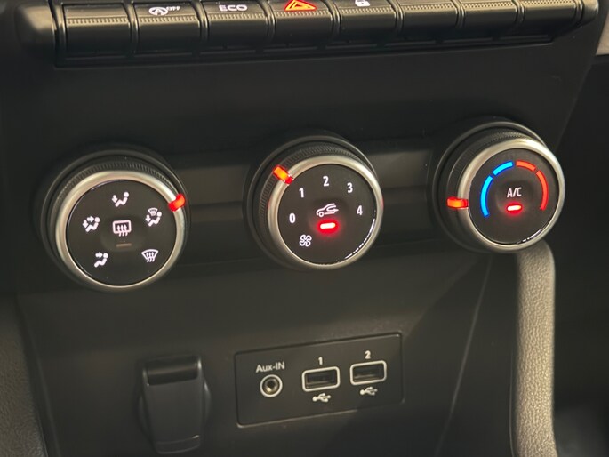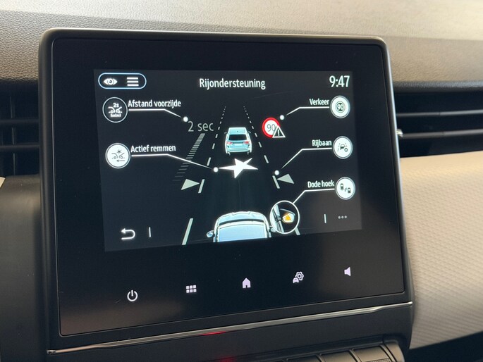 Onze Clio biedt een rijk pakket aan opties: van LED-koplampen met automatische dimfunctie tot parkeersensoren achter en een volledig geïntegreerd navigatiesysteem met Apple CarPlay en Android Auto. Het interieur beschikt over luxe extra's zoals verstelbare stoelen, een leren stuur en multimediamogelijkheden. Ook aan veiligheid is gedacht met zij- en hoofdairbags, een rijstrooksensor met correctie, verkeersborddetectie en het bandenspanningscontrolesysteem.