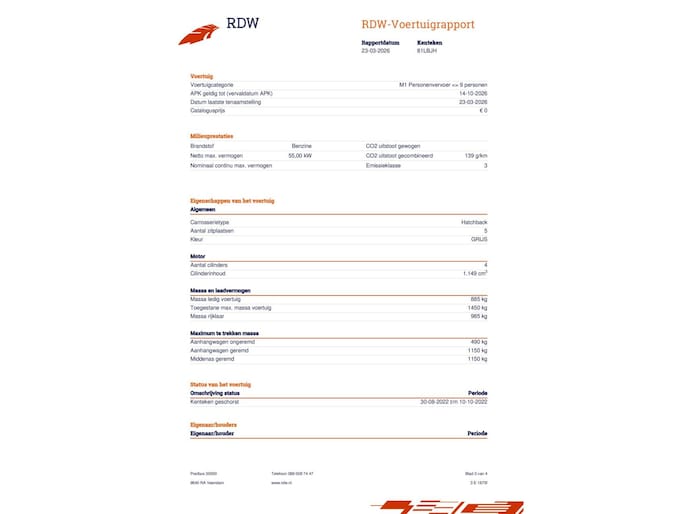 - staat en opties van het voertuig