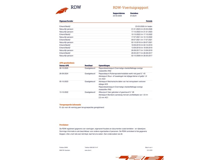 - Onderhoudshistorie aanwezig: Nee