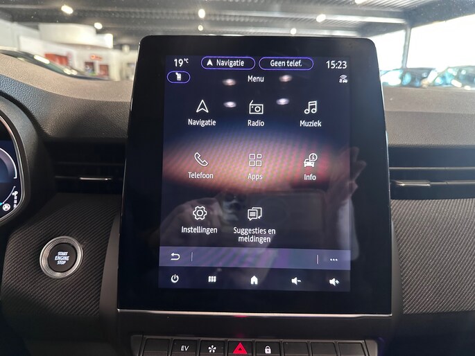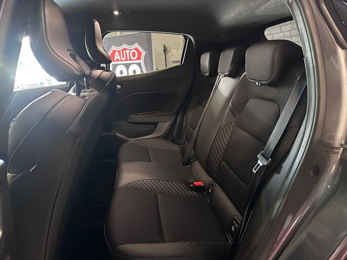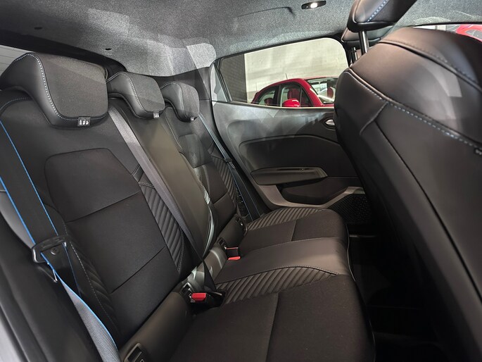 Het interieur biedt luxe en technologie op maat: kunstlederen/stof bekleding, sfeerverlichting, draadloze telefoonlader, Apple CarPlay/Android Auto en een volledig digitaal instrumentenpaneel. Multifunctioneel stuur, sportstoelen en een multimedia-touchscreen maken elke rit tot een belevenis. Verder is deze Clio voorzien van handige opties zoals keyless entry/start, parkeersensoren voor en achter, een achteruitrijcamera en dodehoekdetectie.
