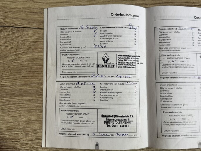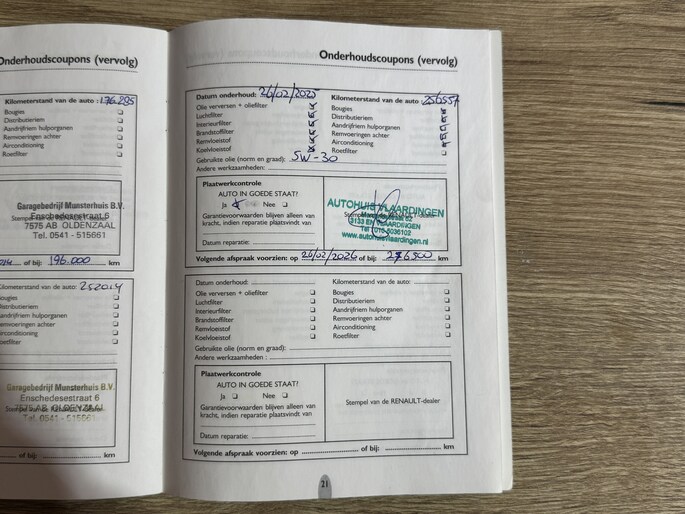 Onderhoudsboekjes: Aanwezig