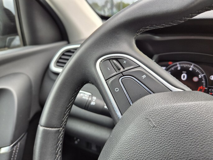 Dankzij het digitale dashboard in deze auto kan je de interface van jouw cockpit personaliseren. Alles vrij achter? De achteruitrijcamera laat het meteen zien. Deze Renault is voorzien van spraakbediening voor het full map navigatiesysteem en voor het audio-installatiesysteem met DAB-ontvangst. Maar je kunt ook de knoppen op het stuur gebruiken. De electronic climate control zorgt voor een prettige binnentemperatuur. Het luxeniveau in deze Renault is niet alleen gericht op comfort, maar ook op jouw veiligheid. Tal van sensoren helpen je om de omgeving in de gaten te houden. De automatisch inschakelbare verlichting zorgt dat automatisch de verlichting wordt ingeschakeld als het donker wordt, wat bijvoorbeeld in tunnels erg handig is. En de regensensor zet de ruitenwissers aan zonder dat je eraan hoeft te denken. Extra opties op deze auto zijn: cruise control, keyless entry, automatisch dimmende binnenspiegel, centrale deurvergrendeling met afstandsbediening, boordcomputer en verstelbaar stuur.