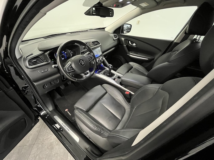 De tijd dat Franse auto's alléén maar mooi waren, ligt al heel lang achter ons. Subliem rijgedrag, innovatieve extra's en een vriendelijke prijs zijn inmiddels standaard. Hij heeft een benzinemotor en een handgeschakelde zesversnellingsbak. Deze Renault Kadjar is luxe afgewerkt. Kijk maar naar het lederen interieur! In de verwarmbare voorstoelen zitten is elke keer een welkom gevoel. Bij de uitrusting van deze Renault horen onder meer 19 inch lichtmetalen velgen, LED koplampen, extra getint glas, in delen neerklapbare achterbank, LED-achterlichten en verstelbare lendensteunen.