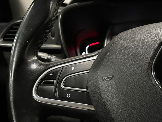 Soepel inparkeren in de krapste parkeervakken. De achteruitrijcamera maakt het mogelijk. U kunt het audio-installatiesysteem met DAB-ontvangst en het navigatiesysteem bedienen met de knoppen op het stuur of zelf met uw stem. U verwacht natuurlijk automatische airconditioning in deze auto, en die is er dan ook. Om de veiligheid onderweg te verhogen, heeft deze Renault zowel een automatisch inschakelbare verlichting als een regensensor aan boord, zodat hij zelf de verlichting en de ruitenwissers kan inschakelen. De cruise control levert een mooie, gelijkmatige koers. Dat rijdt prettig. Deze Renault is voorzien van keyless entry, lederen stuur, boordcomputer en lederen versnellingspook.