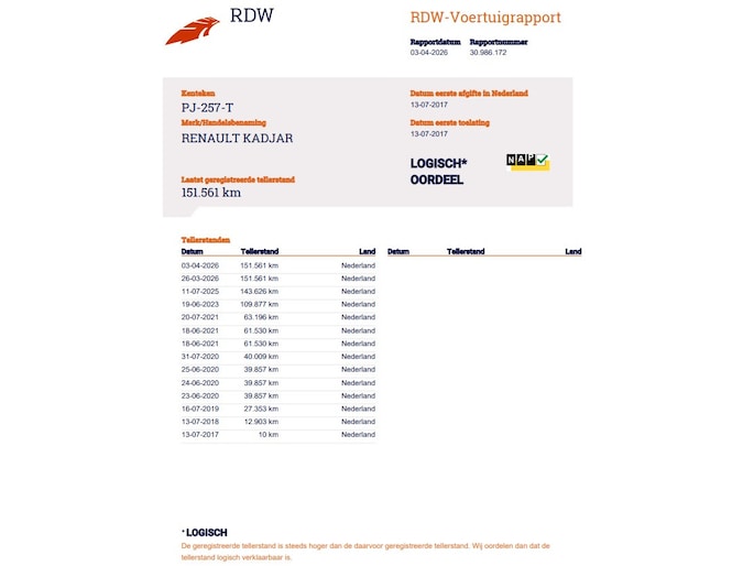 Kilometerstand gecontroleerd