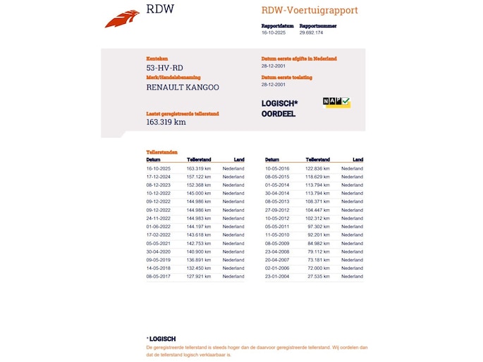 Kilometerstand gecontroleerd
