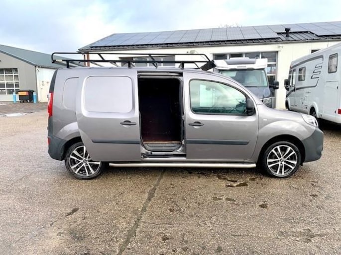 Zeer nette Renault Kangoo lange wielbasis met zowel links als rechts een schuifdeur in antraciet metallic lak.