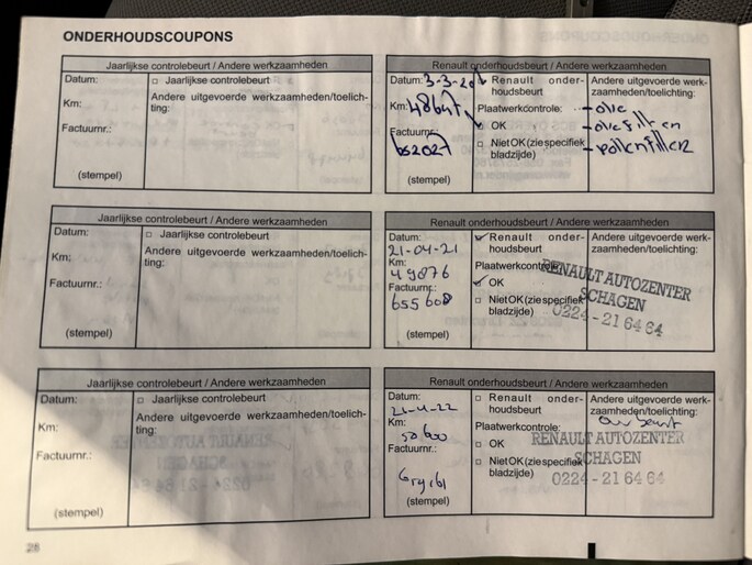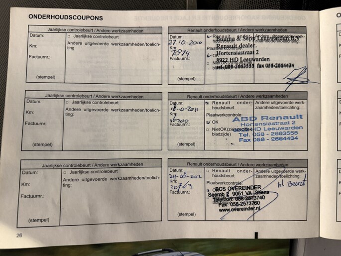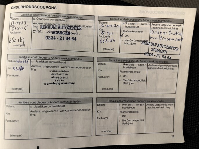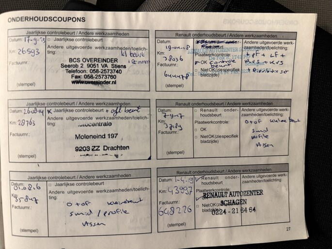 Zo kunnen wij aan de hand van het chassisnummer al veel controles doen. In het internationale Renault.Net intranet systeem (alleen inzichtelijk voor ons als dealers!) zien we de historie van de auto en dat vertelt ons al veel. Als de auto dan bij ons binnen komt, checken we nog veel meer! Is de staat zoals gezegd en te zien op de foto's? Zijn er verder bijzonderheden te zien? Voldoet hij echt aan de kwaliteit die wij willen leveren? Als we daarachter staan gaat de auto vervolgens onze werkplaats in, waar we ook onder de motorkap en aan de onderzijde checks doen.. ..