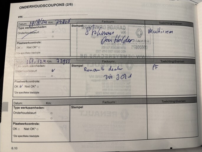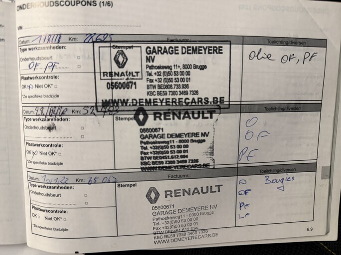 Zo kunnen wij aan de hand van het chassisnummer al veel controles doen. In het internationale Renault.Net intranet systeem (alleen inzichtelijk voor ons als dealers!) zien we de historie van de auto en dat vertelt ons al veel. Als de auto dan bij ons binnen komt, checken we nog veel meer! Is de staat zoals gezegd en te zien op de foto's? Zijn er verder bijzonderheden te zien? Voldoet hij echt aan de kwaliteit die wij willen leveren? Als we daarachter staan gaat de auto vervolgens onze werkplaats in, waar we ook onder de motorkap en aan de onderzijde checks doen.. ..