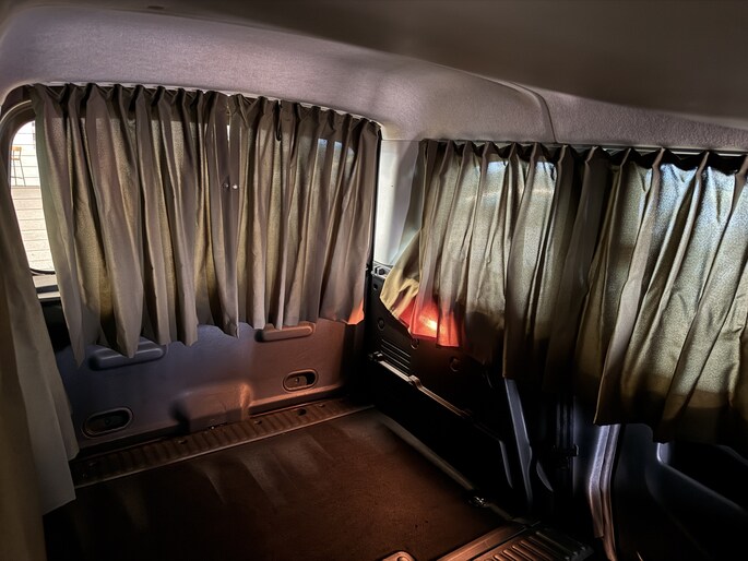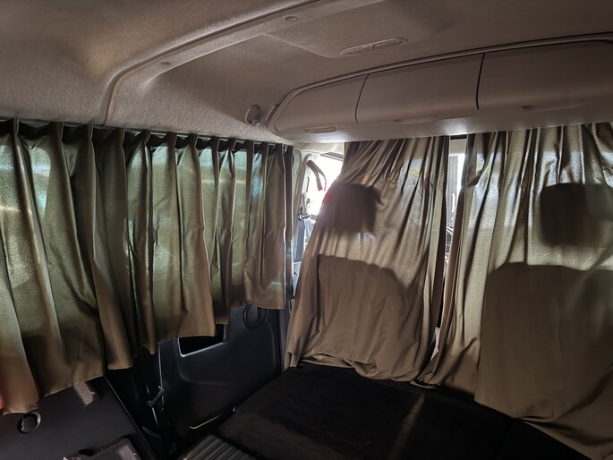 En het meest bijzondere is wel dat de ruimte achter gebruikt kan worden als slaapplaats, de gordijnen zijn allemaal te sluiten (en overigens ook heel makkelijk helemaal weg te halen) om een slaapplek met privacy te creëren! De laatste 2 foto's laten dit zien.. ..