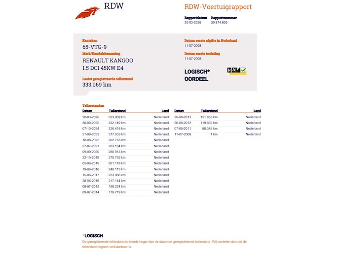 Je bod op Renault Kangoo is geplaatst