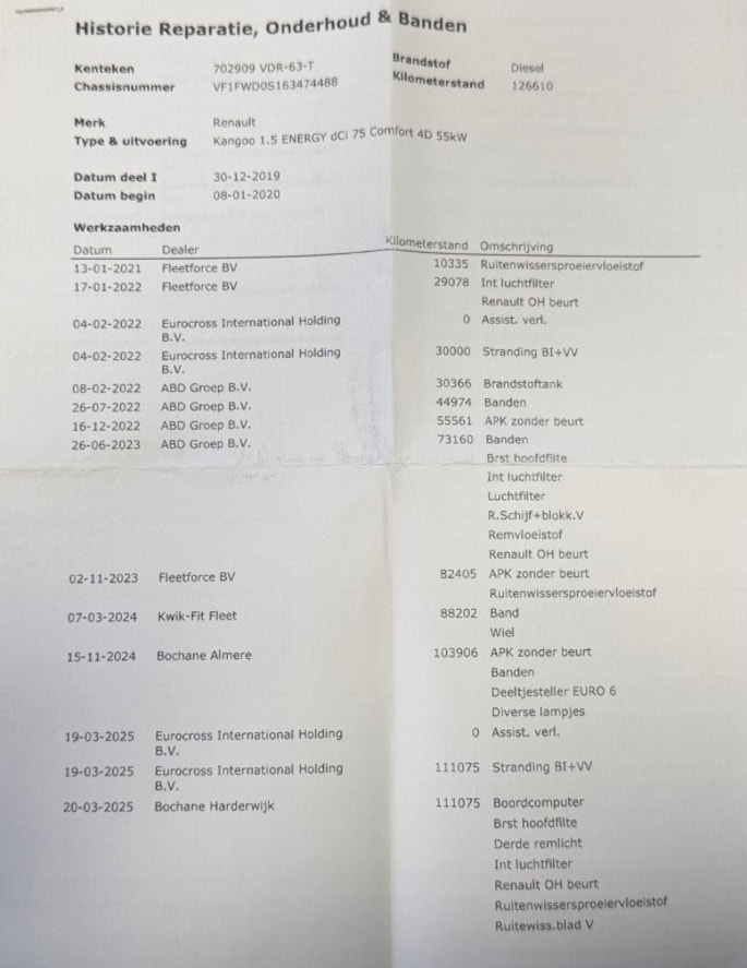 Kilometerstand gecontroleerd