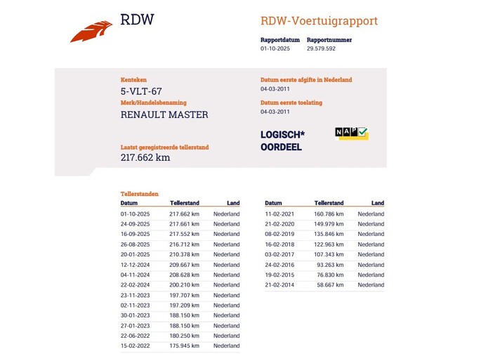 Kilometerstand gecontroleerd