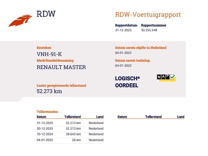 Kilometerstand gecontroleerd