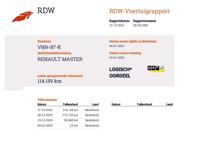 Kilometerstand gecontroleerd