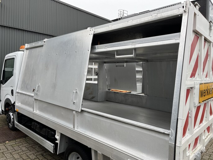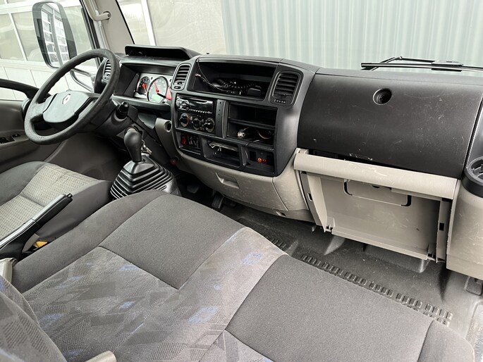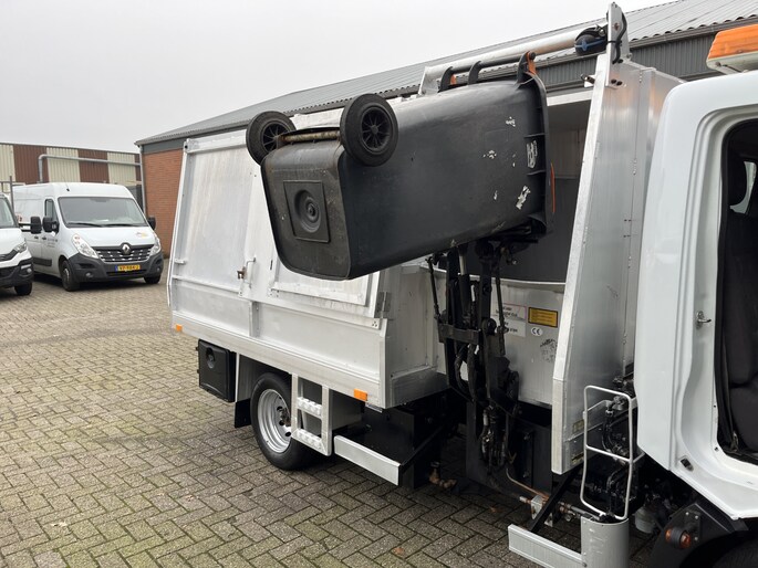 een zeer nette Renault Trucks Maxity 150.35/6 3.0 L2 Veegvuilkipper met zijlader voor containers Airco Werkverlichting Kipper Open laadbak Pick-up P-up Vuilniswagen Vuilnisauto Zijbelader Vuilnis Ex overheid