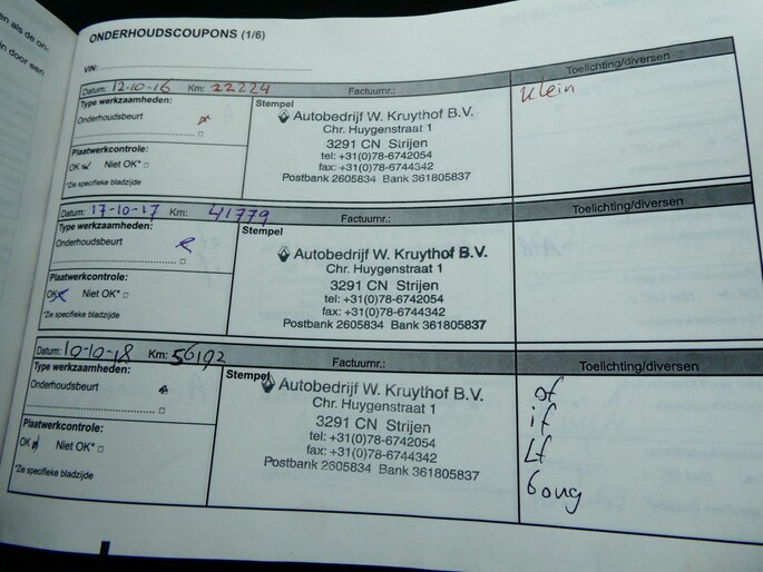 Onderhoudsboekjes: Aanwezig