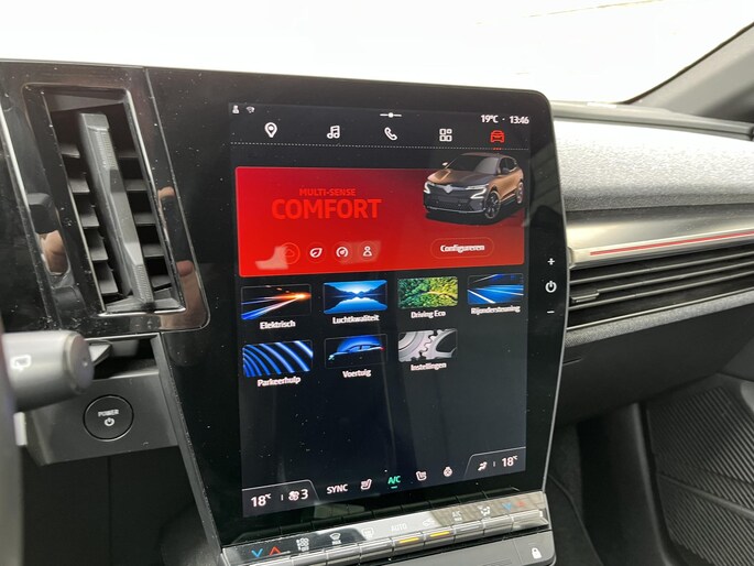 Tijdens de rit wordt u als bestuurder ondersteund door verschillende systemen die de weg en uw omgeving in de gaten houden. Een belangrijke bijdrage aan de veiligheid onderweg levert de verkeersbord-detectie in deze Renault. Het Lane-keeping systeem zorgt voor een automatisch constante positie binnen de rijstrook. Afdwalen is uitgesloten. Forward collision warning waarschuwt bij een dreigende aanrijding met een voorligger. Ook helpen het hill hold functie, brake assist, vermoeidheidsherkenning en bandenspanningcontrolesysteem, uw rit tot een veilige rit te maken.
