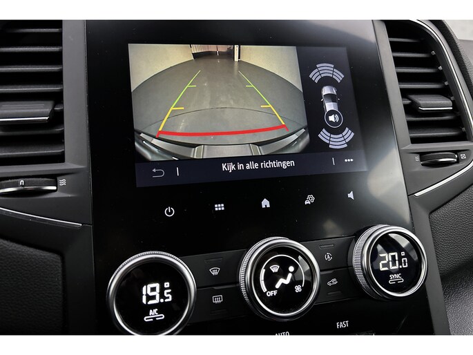 Nooit meer problemen bij achteruitrijden of inparkeren. De achteruitrijcamera houdt alles in de gaten! Deze Renault is voorzien van knoppen op het stuur om het navigatiesysteem en het audio-installatiesysteem te bedienen. Nooit meer te warm of te koud. De automatische airconditioning zorgt altijd voor de temperatuur die u kiest. De cruise control geeft elke flitser het nakijken. Met lederen stuur, isofix-aansluiting, centrale portiervergrendeling en boordcomputer is deze auto helemaal compleet.