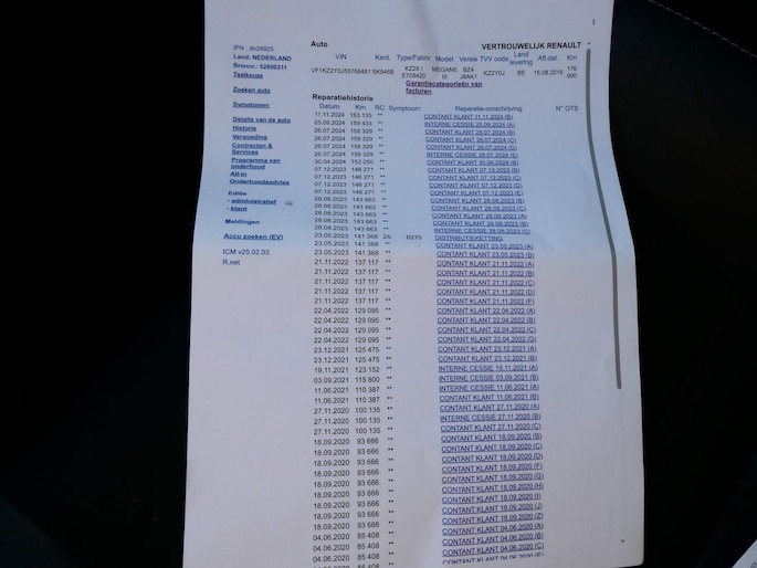 - Onderhoudshistorie aanw.