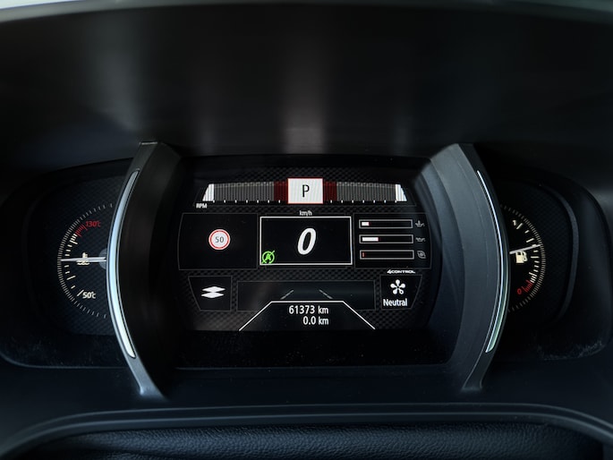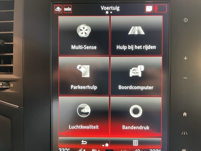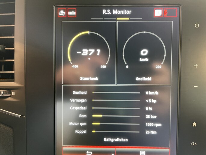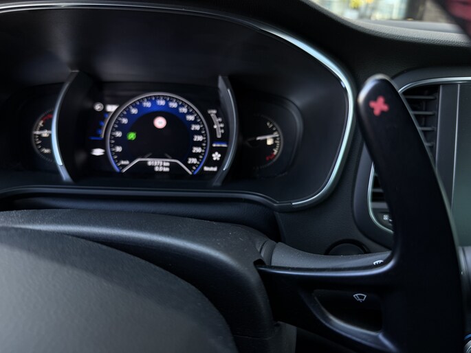 Naast die RS Monitor is ook het Easy Life Pack (dodehoekwaarschuwing, parkeersensoren voor, zij en achter met camera en de inparkeerassitent), het Head-Up Display in kleur, de donkere alcantara bekleding, verwarmde voorstoelen, groot R-link scherm en de Titanium grijze metallic lak bijbesteld. De vorige eigenaar heeft hem laten voorzien van nieuwe 19" Interlagos Noir Diamantee lichtmetalen velgen.. ..