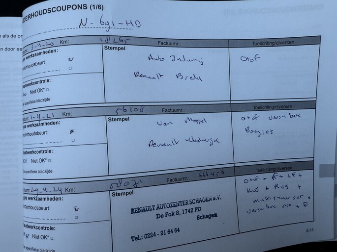 Zo kunnen wij aan de hand van het chassisnummer al veel controles doen. In het internationale Renault.Net intranet systeem (alleen inzichtelijk voor ons als dealers!) zien we de historie van de auto en dat vertelt ons al veel. Als de auto dan bij ons binnen komt, checken we nog veel meer! Is de staat zoals gezegd en te zien op de foto's? Zijn er verder bijzonderheden te zien? Voldoet hij echt aan de kwaliteit die wij willen leveren? Als we daarachter staan gaat de auto vervolgens onze werkplaats in, waar we ook onder de motorkap en aan de onderzijde checks doen.. ..