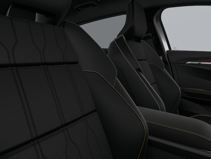 • Bekleding TEP-leder zwart met siernaden en biezen in warm titanium