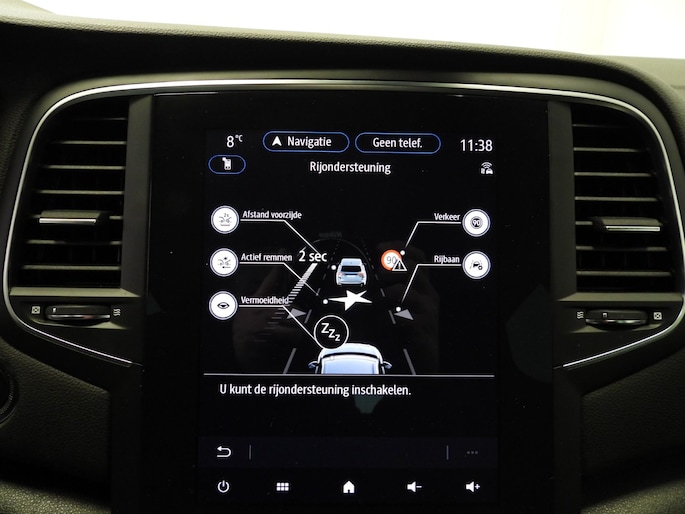 In de Renault Mégane Estate heeft uw veiligheid en die van uw omgeving prioriteit. Tijdens de rit hebt u altijd een bijrijder, want de verkeersbord-detectie leest de borden langs de weg en projecteert ze voor u op het instrumentarium. Met het Lane-keeping systeem komt u nooit per ongeluk buiten de rijstrook. Forward collision warning waarschuwt bij een dreigende aanrijding en vermindert de gevolgen van een ongeval. U bent mede dankzij head-up display, hill hold functie, brake assist en bandenspanningcontrolesysteem steeds veilig onderweg.