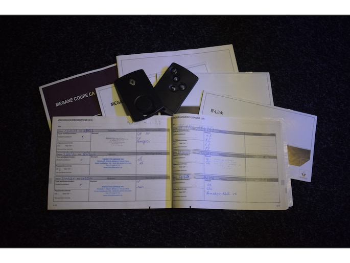 Naast de routeinformatie van het navigatiesysteem kunt u muziek via het audiosysteem ook online beluisteren via bluetooth. Natuurlijk is er ook automatische airconditioning aanwezig. U kunt bij het inparkeren natuurlijk niet aan alle kanten ogen hebben. Daarom is deze Renault Mégane Coupé-Cabriolet voorzien van parkeersensoren! De aanwezige cruise control scheelt lekker in brandstofkosten. En ook bij de flitspaal. Gemak staat voorop bij deze Renault Mégane Coupé-Cabriolet. Bijvoorbeeld merkbaar aan de keyless entry. Extra opties op deze auto zijn: automatisch dimmende binnenspiegel, lederen stuur en centrale deurvergrendeling met afstandsbediening.