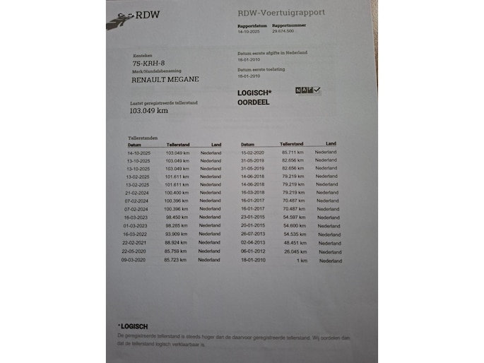 Kilometerstand gecontroleerd