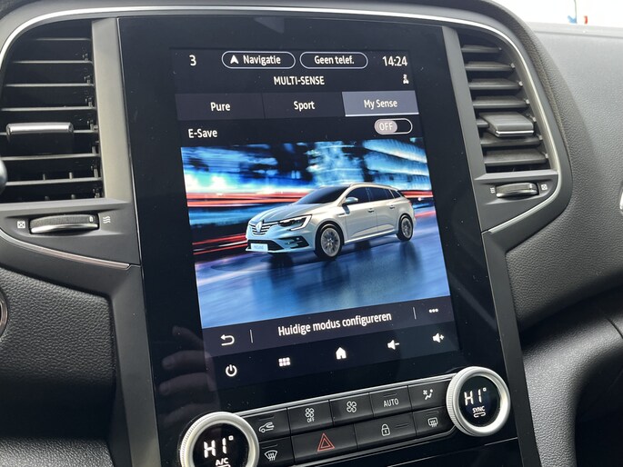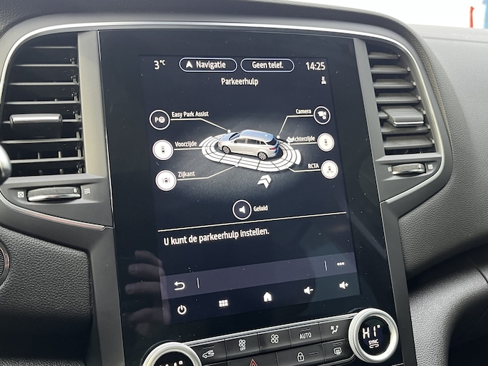 Altijd de benodigde functies in beeld? Het digitale dashboard zorgt ervoor. Soepel inparkeren gaat gemakkelijker dan u verwacht dankzij de achteruitrijcamera. Met adaptive cruise control houdt deze auto automatisch afstand tot uw voorligger. In deze Mégane vindt u schakelaars op het stuur om het full map navigatiesysteem te bedienen en het audiosysteem met DAB-ontvangst. Automatische airconditioning verwarmt of koelt het interieur met een druk op de knop. Met regensensor, keyless entry, automatisch dimmende binnenspiegel, lederen stuur, boordcomputer en lederen versnellingspook is deze auto helemaal compleet.