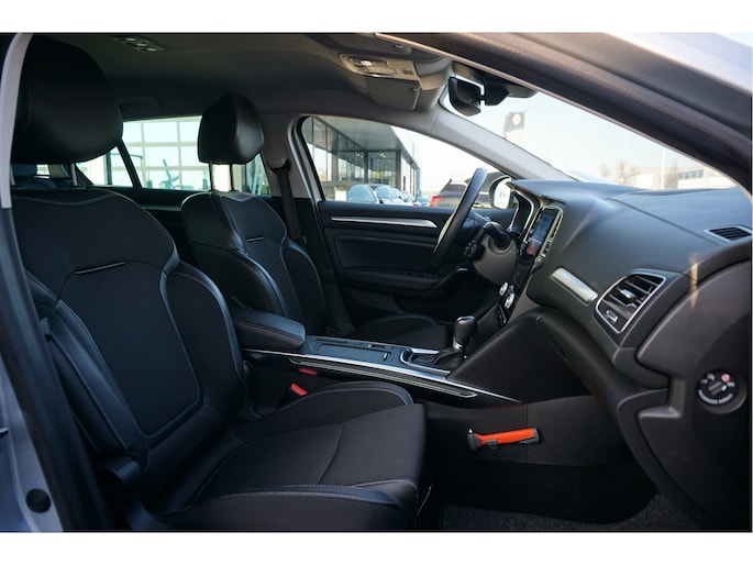 Met een auto als deze Renault Mégane Estate komt u absoluut goed voor de dag. De aandrijving komt voor rekening van een benzinemotor en een automatische transmissie. Ook 17 inch lichtmetalen velgen, LED koplampen, donker getint glas achter, in delen neerklapbare achterbank, LED-achterlichten en verstelbare lendensteunen horen tot de voorzieningen op deze auto.