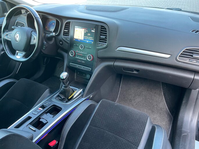 Deze Renault Mégane komt uit 2017, is voorzien van een benzine-motor, heeft een maximum vermogen van 96 kW (131 PK) en een cilinderinhoud van 1198 cc.