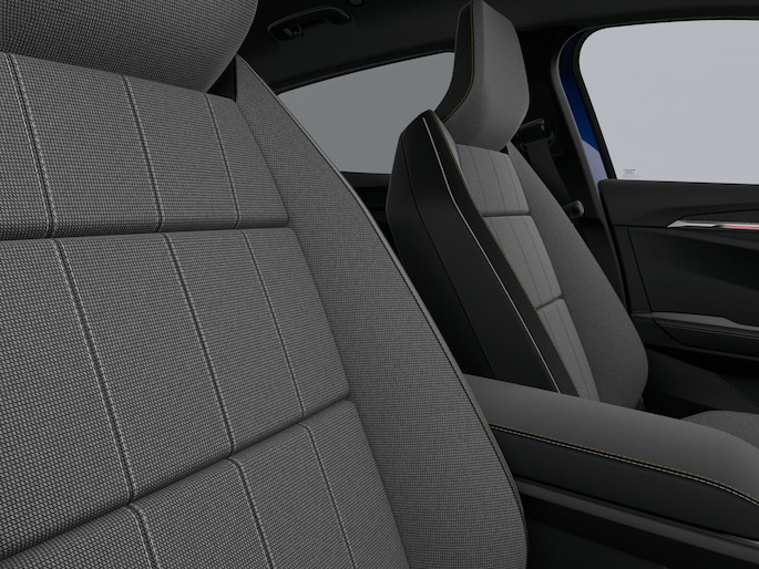 • Dashboard in zwart bekleed met gerecycled textiel met sierstrip in mat chroom met sfeerverlichting en bekledingsstrook in 'alcantara gris' onder de voorruit