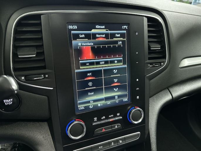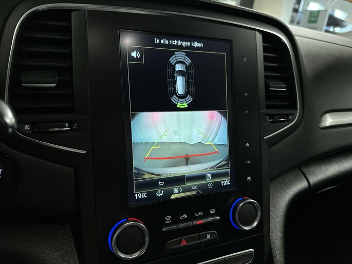 Zoals u mag verwachten van deze Renault Mégane Estate is hij uitgerust met een reeks aan actieve veiligheidssystemen. De actuele snelheidslimiet, een inhaalverbod en andere verkeersborden; de verkeersborddetectie ondersteunt u tijdens elke rit. Deze Renault Mégane Estate is ook behulpzaam als het gaat om een rechte koers. Het Lane-keeping systeem signaleert en corrigeert als u onbedoeld de rijstrooklijnen dreigt te overschrijden. Bij een noodstop gebeurt er heel veel tegelijk: gas los, rempedaal in, kijken, sturen. Dan is het een veilig gevoel dat de Brake Assist uw remactie tot het maximum oppept. De auto is ook uitgerust met dodehoekdetectie, hill hold functie en bandenspanningcontrolesysteem.