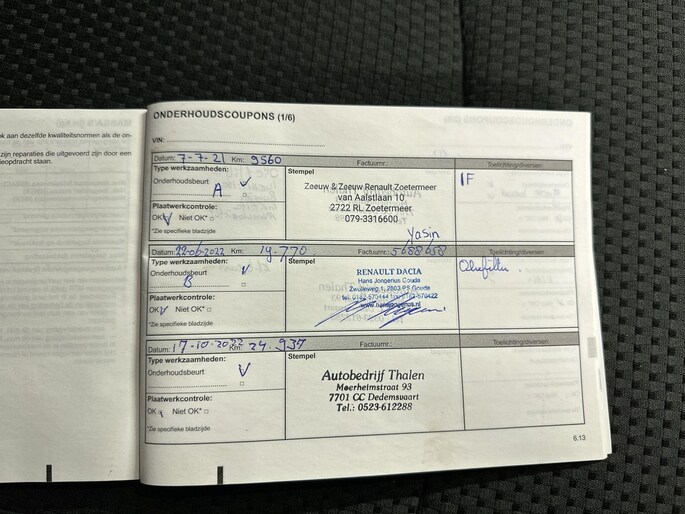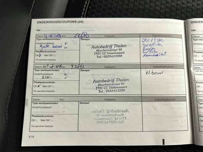 Onderhoudsboekjes: Aanwezig