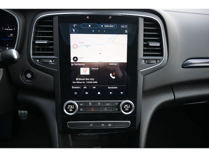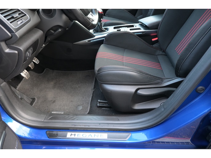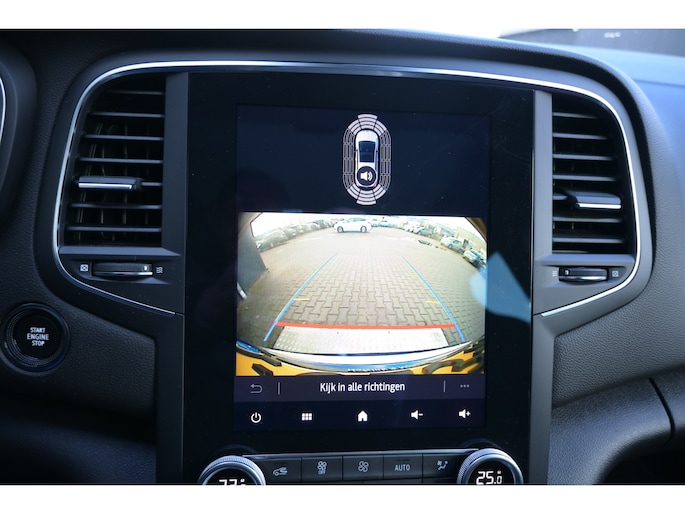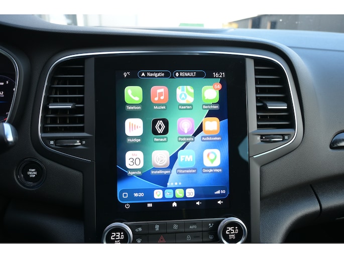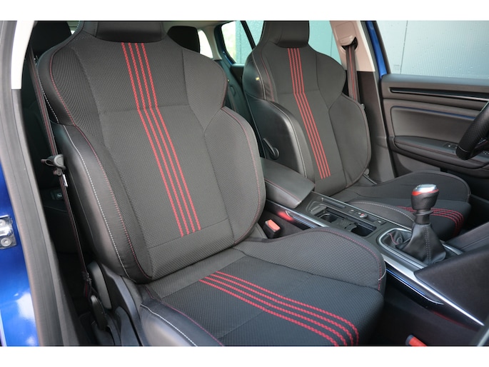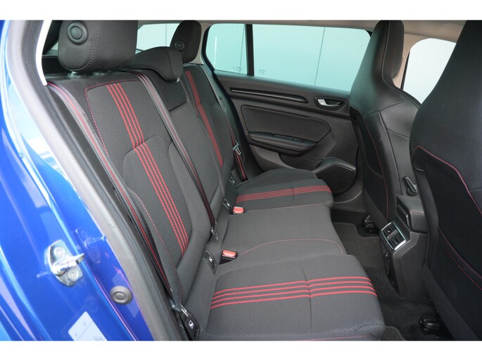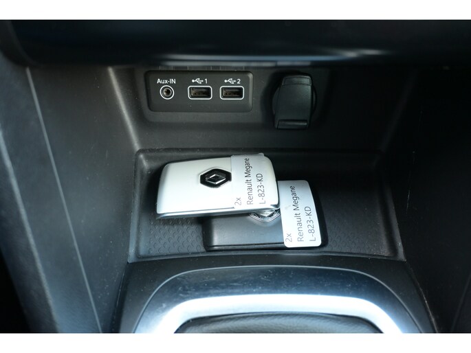 Zoals u mag verwachten van deze Renault Mégane Estate is hij uitgerust met een reeks aan actieve veiligheidssystemen. In het instrumentarium laat de verkeersborddetectie de actuele verkeersborden zien. Indien u onbedoeld de rijstrook lijkt te verlaten, reageert het Lane-keeping systeem meteen en corrigeert. Forward collision warning waarschuwt bij een dreigende aanrijding met een voorligger. Bovenop deze veiligheidsfeatures heeft deze Renault bovendien head-up display, dodehoekdetectie, hill hold functie, brake assist en bandenspanningcontrolesysteem.