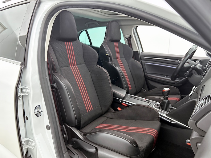Kwaliteit koppelen aan fraaie vormgeving en ultiem rijcomfort? Laat dat maar aan de Franse autobouwers over. In deze auto vindt u een benzinemotor en een handgeschakelde zesversnellingsbak. De sportstoelen geven het interieur van deze Mégane een super strakke en sportieve uitstraling. Dankzij het elektrisch bediende glazen panoramadak lijkt het of u altijd met open dak rijdt. Tot de voorzieningen van deze auto behoren 17 inch lichtmetalen velgen, LED koplampen, donker getint glas achter, in delen neerklapbare achterbank, LED-achterlichten en verstelbare lendensteunen.